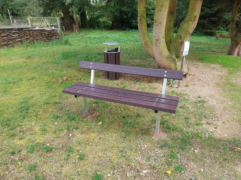 The bench is made from recycled plastic. The posts of the bench are made from structural steel, protected against corrosion by hot-dip galvanizing, which significantly prolongs the life of the play unit. The structures are fixed in a concrete bed. All fastening material is galvanized or stainless steel.