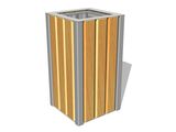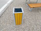 The litter bin is made from spruce wood. The wood is impregnated and coated with a layer of lacquer. The structure is fixed in a concrete bed. The trash can insert is made of galvanized steel. All other metallic elements are also zinc coated or duplex powder coated with coat curing according to RAL to prevent corrosion. All fastening material is galvanized or stainless steel.