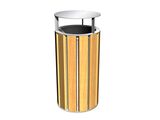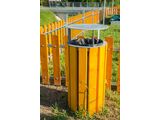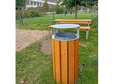The litter bin is made from spruce wood. The wood is impregnated and coated with a layer of lacquer. The structure is fixed in a concrete bed. The trash can insert is made of galvanized steel. All other metallic elements are also zinc coated or duplex powder coated with coat curing according to RAL to prevent corrosion. All fastening material is galvanized or stainless steel.