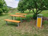 The litter bin is made from spruce wood. The wood is impregnated and coated with a layer of lacquer. The structure is fixed in a concrete bed. The trash can insert is made of galvanized steel. All other metallic elements are also zinc coated or duplex powder coated with coat curing according to RAL to prevent corrosion. All fastening material is galvanized or stainless steel.