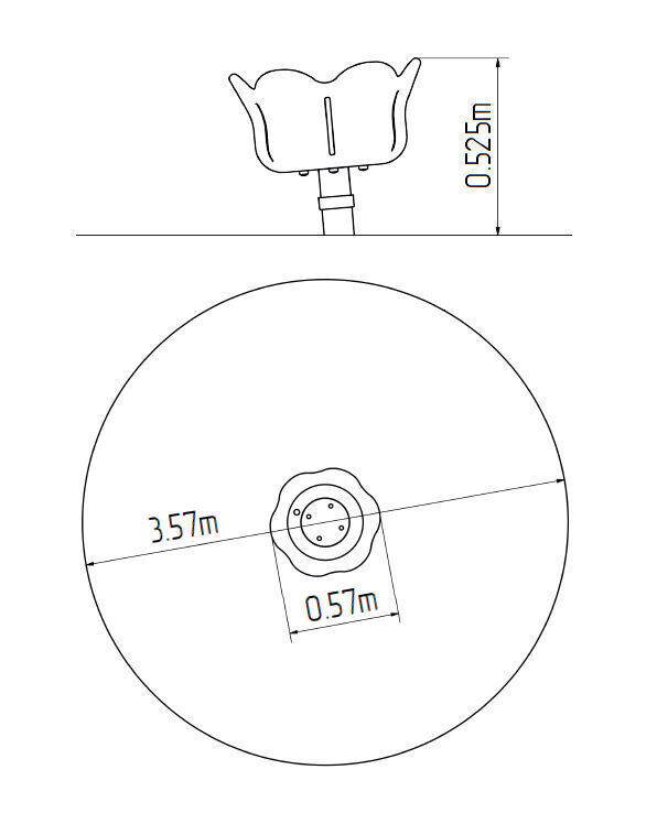Stand-up merry-go-round KO142K - there is no need for a fall zone up to the height of 1 m, a grass surface is enough.