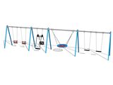 The swing is hung on a metal girder using galvanized chains. The "Bird's Nest" seat is made from polypropylene rope with heavy duty fibres. The hanging ropes are made using HERKULES material (16 mm thick ropes made from polypropylene with a steel internal core). The Normal seat is made of aluminum, covered with a soft and comfortable rubber. The Baby seat baby is made of rubber and is reinforced with an aluminum insert. All fastening material is galvanized or stainless steel.