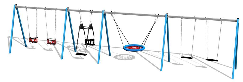 Sixfold chain swing RH6621K - metal (f.h. 1,5 m). We offer three color variants of the support structure - red, blue and brown. More information