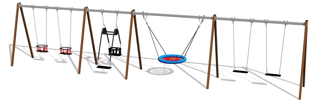 Sixfold chain swing RH6621K - metal (f.h. 1,5 m). We offer three color variants of the support structure - red, blue and brown. More information