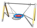 The swing is hung on a metal girder using galvanized chains. The "Bird's Nest" seat is made from polypropylene rope with heavy duty fibres. The hanging ropes are made using HERKULES material (16 mm thick ropes made from polypropylene with a steel internal core). All fastening material is galvanized or stainless steel.