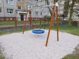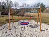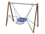 The swing is hung on a metal girder using galvanized chains. The "Bird's Nest" seat is made from polypropylene rope with heavy duty fibres. The hanging ropes are made using HERKULES material (16 mm thick ropes made from polypropylene with a steel internal core). All fastening material is galvanized or stainless steel.