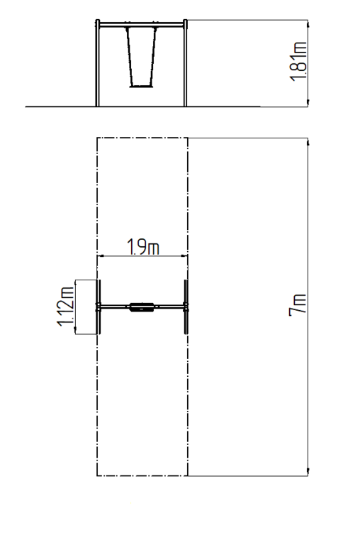 The support structure of the swing is made from structural steel, which is zinc coated or duplex powder coated with coat curing according to RAL to prevent corrosion and is fixed in a concrete bed. The Normal seat is made of aluminum, covered with a soft and comfortable rubber. The chains are stainless steel, resulting in a very prolonged service life of the product. All fastening material is galvanized or stainless steel.