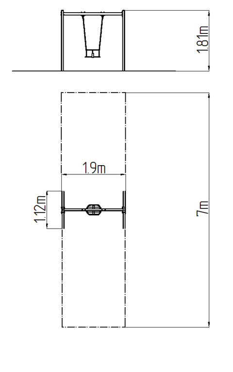 The support structure of the swing is made from structural steel, which is zinc coated or duplex powder coated with coat curing according to RAL to prevent corrosion and is fixed in a concrete bed. The Normal seat is made of aluminum, covered with a soft and comfortable rubber.