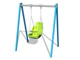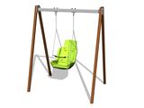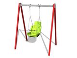 The support structure of the swing is made from structural steel, which is zinc coated or duplex powder coated with coat curing according to RAL to prevent corrosion and is fixed in a concrete bed. The Inclusive seat is made of HDPE with shock-absorbing bumper. The chains are stainless steel, resulting in a very prolonged service life of the product. All fastening material is galvanized or stainless steel.