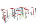 The climbing net, the horizontal climbing net, the climbing rope and the rope ladder are made using HERKULES material (16 mm thick ropes made from polypropylene with a steel internal core) and they are connected with plastic joints. The ropes are connected with plastic joints. All fastening material is galvanized or stainless steel.