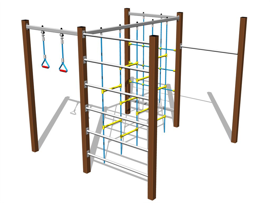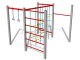 The climbing net, the horizontal climbing net, the climbing rope and the rope ladder are made using HERKULES material (16 mm thick ropes made from polypropylene with a steel internal core) and they are connected with plastic joints. The ropes are connected with plastic joints. All fastening material is galvanized or stainless steel.