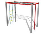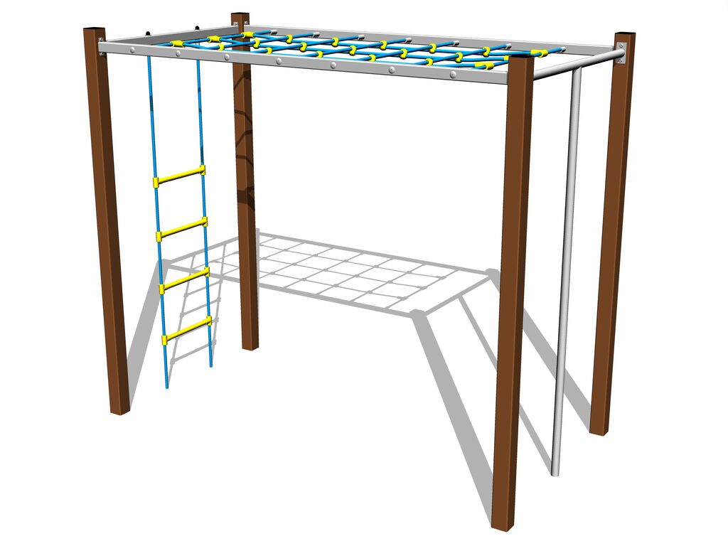 The climbing net and the rope ladder are made using HERKULES material (16 mm thick ropes made from polypropylene with a steel internal core) and they are connected with plastic joints. All fastening material is galvanized or stainless steel.