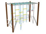 The climbing net and the rope ladder are made using HERKULES material (16 mm thick ropes made from polypropylene with a steel internal core) and they are connected with plastic joints. All fastening material is galvanized or stainless steel.
