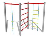 The climbing net and the rope ladder are made using HERKULES material (16 mm thick ropes made from polypropylene with a steel internal core) and they are connected with plastic joints. All fastening material is galvanized or stainless steel.