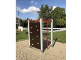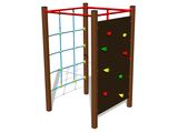 The climbing net is made using HERKULES material (16 mm thick ropes made from polypropylene with a steel internal core) and it is connected with plastic joints. The climbing wall is made from HPL (High-preSS88ure laminate, which is characterised by high colour stability, UV resistance and water resistance). The climbing holds are made from the mix of silica sand and epoxy resin, which ensures long life, colour preservation as well as skin friendly surface. All fastening material is galvanized or stainleSS88 steel.