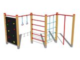 Climbing wall, 2x swinging rope loop, Swedish ladder, climbing net, climbing pole. More information