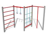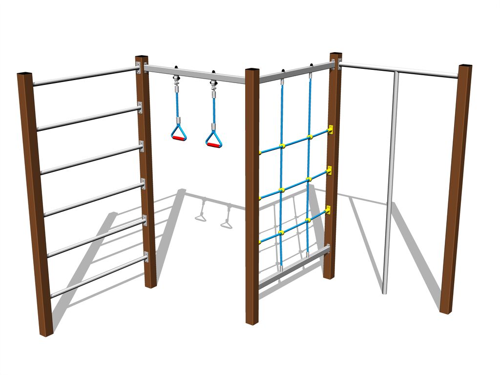 Climbing wall, 2x swinging rope loop, Swedish ladder, climbing net, climbing pole. More information