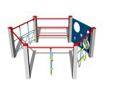 The support structure of the climbing set is made of structural steel which is protected against corrosion by zinc coating, resulting in a very prolonged service life of the workout elements or duplex powder coated with coat curing according to RAL to prevent corrosion. All other metallic elements are also zinc coated or duplex powder coated with coat curing according to RAL to prevent corrosion.