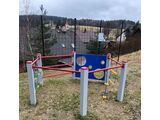 The climbing net and the rope ladder are made using HERKULES material (16 mm thick ropes made from polypropylene with a steel internal core) and they are connected with plastic joints. The Ball toSS88 is made of high-quality HDPE (high-preSS88ure, full-color polyethylene, which is characterized by high color stability, resistance to scratching, UV resistance and especially safety because it is brittle and there is no risk of injury to children by sharp debris). All fasteners are galvanized or stainleSS88 steel.