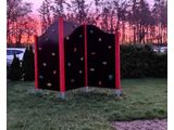 The climbing wall is made from water-proof plywood designed for external use. The climbing holds are made from the mix of silica sand and epoxy resin, which ensures long life, colour preservation as well as skin friendly surface. All fastening material is galvanized or stainless steel.