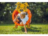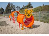 Head and legs of the dog are made of high quality HDPE plastic (high density coloured polyethylene, which is characterised by high colour stability, UV resistance but mainly safety as it doesn't break and therefore there is no danger of injury to children by sharp fragments). Rope tunnels are made using HERKULES material (16 mm thick ropes made from polypropylene with a steel internal core) and are connected with plastic or aluminium joints. Crawl tunnels are made from fibreglass which is UV stable and it is characterised by high colour stability. All fastening material is galvanized or stainless steel.