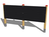 The panel support structure is made from thick glued wooden supports. This solution ensures maximum protection against cracking, which is common for products made from solid wood. The wooden supports are impregnated and coated with a triple layer of lacquer, which meets the terms and conditions of the EN71/3 Standard (safe for children's toys). The structures are anchored into the ground in steel plates, which are protected against corrosion by hot-dip galvanizing and fixed in a concrete bed. The anchors are fastened to the play unit with bolts and their structure ensures that they are not in direct contact with the ground. All other metallic elements are also zinc coated or duplex powder coated with coat curing according to RAL to prevent corrosion.