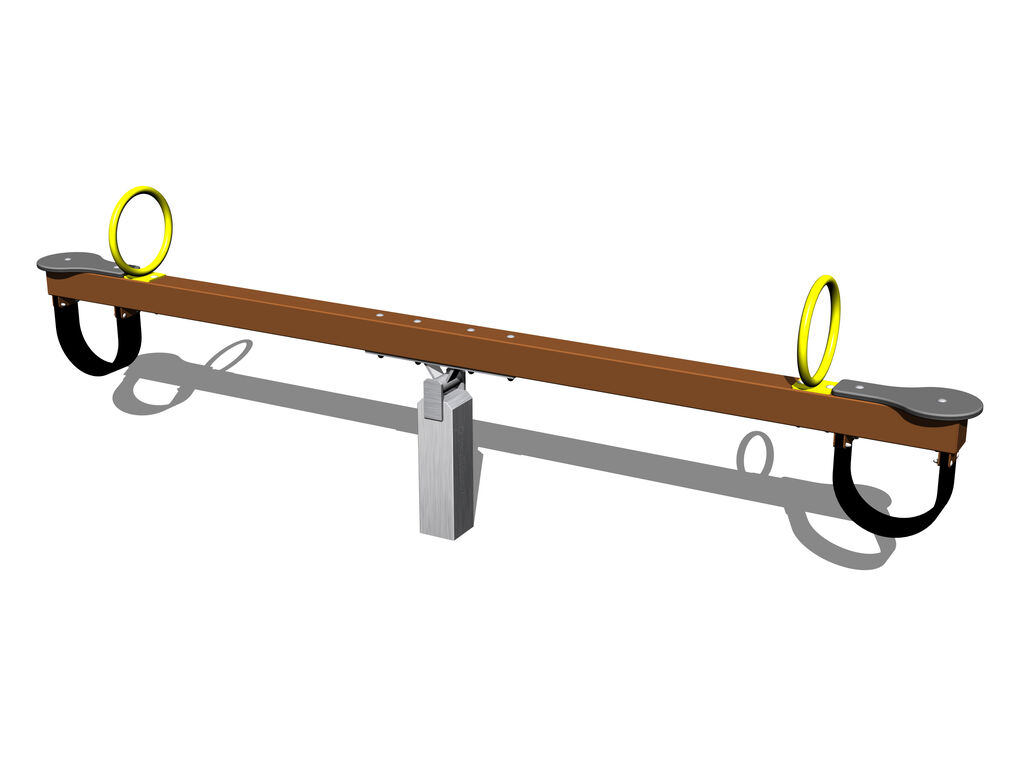 The seesaw beam is made from structural steel, which is zinc coated or duplex powder coated with coat curing according to RAL to prevent corrosion and is anchored to the support structure by carriage bolts. The support structure of the see-saw is steel; it is protected against corrosion by hot-dip galvanizing and fixed in a concrete bed.