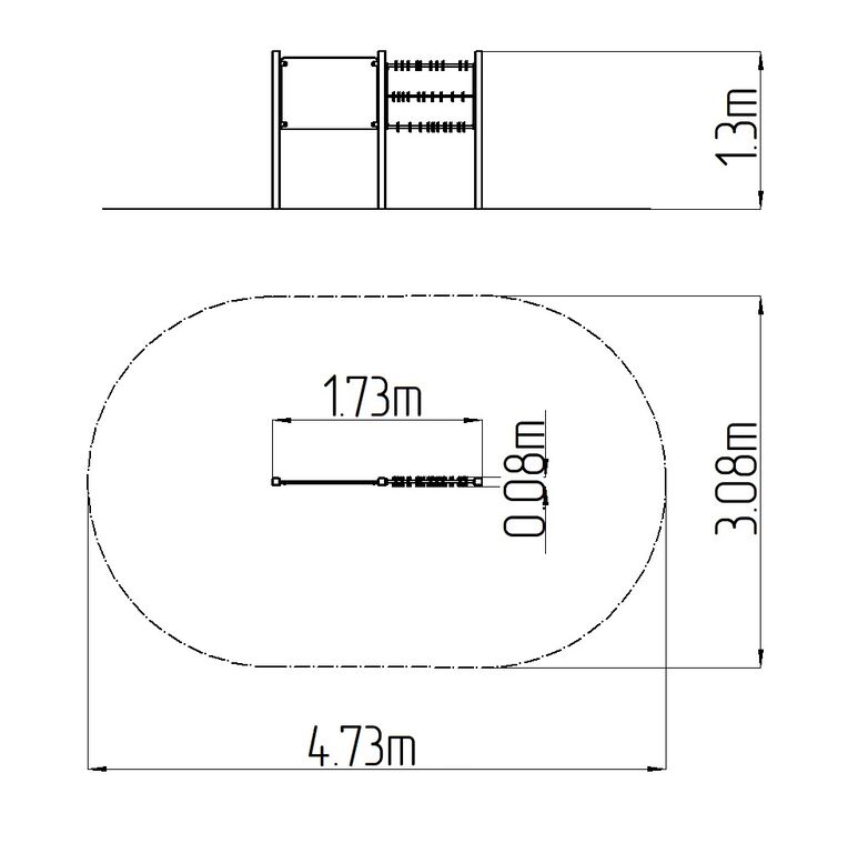 The support structure of the drawing board is made of structural steel which is protected against corrosion by zinc coating, resulting in a very prolonged service life of the workout elements or duplex powder coated with coat curing according to RAL to prevent corrosion. These structures are anchored to concrete footings. All other metallic elements are also zinc coated or duplex powder coated with coat curing according to RAL to prevent corrosion.
