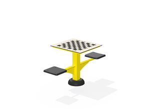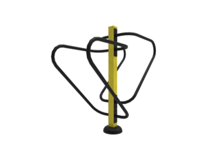 The wheels are made of powder-coated steel tubes. The supporting column is made of a steel tube with a mounting flange at the bottom. Holes are sealed with steel elements at the ends. All fasteners are stainless.