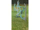 Seat and backrest are made of aluminum and covered with HDPE polyethylene (high-pressure, full-colored polyethylene, which is characterized by high color stability, UV resistance). The handles are made of powder-coated steel tubes. The supporting column is made of a steel tube with a mounting flange at the bottom. The seat frame and tread are made of powder coated sheet metal. Rolling bearings are used for movable connections. Holes are sealed with steel elements at the ends. All fasteners are stainless.