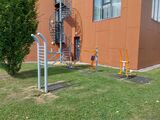 The handles are made of powder-coated steel tubes. The supporting column is made of a steel tube with a mounting flange at the bottom. The frame and tread are made of powder coated sheet metal. Rolling bearings are used for movable connections. Holes are sealed with steel elements at the ends. All fasteners are stainless.