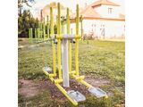 Functions: It builds muscles in the lower part of the body, such as calves, lumbar muscles and the muscles of the lower abdomen. It works muscles of arms, improves the function of the heart and the respiratory tract, coordination of movements and the body stability. Instructions: Position yourself with your soles on the small platforms and grasp the handles firmly. Start moving with your hands and legs simultaneously and try to hold your back upright. More information