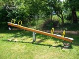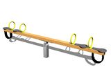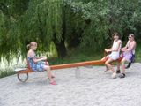 The seesaw beam is made from a glued wooden support and is secured to the steel structure with carriage bolts. The construction is protected against corrosion by hot-dip galvanizing and is fixed in a concrete bed. The wooden support is impregnated and coated with a triple layer of lacquer, which meets the terms and conditions of the EN71/3 Standard (safe for children's toys).