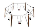 The support structure of the swing is made from structural steel, which is zinc coated or duplex powder coated with coat curing according to RAL to prevent corrosion. The structures are anchored into the ground in steel plates, which are protected against corrosion by hot-dip galvanizing a and fixed in a concrete bed. The anchors are fastened to the play unit with bolts and their structure ensures that they are not in direct contact with the ground.