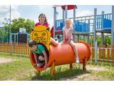 Head, tail and legs of the lion are made of high quality HDPE plastic (high density coloured polyethylene, which is characterised by high colour stability, UV resistance but mainly safety as it doesn't break and therefore there is no danger of injury to children by sharp fragments). Crawl tunnel is made from fibreglass which is UV stable and it is characterised by high colour stability. All fastening material is galvanized or stainless steel.
