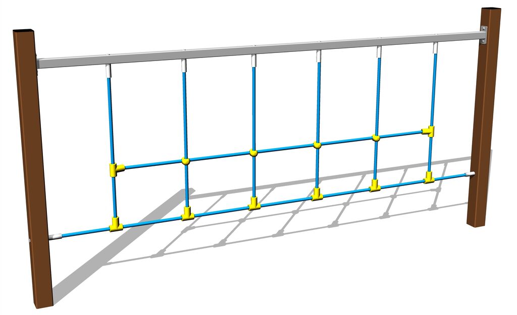 The ropes are made using HERKULES material (16 mm thick ropes made from polypropylene with a steel internal core) and are connected with plastic joints. All fastening material is galvanized or stainless steel.