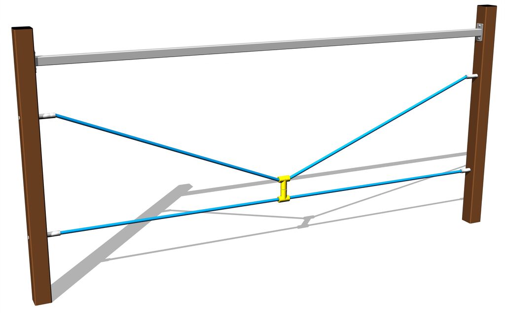 The ropes are made using HERKULES material (16 mm thick ropes made from polypropylene with a steel internal core) and are connected with plastic joints. All fastening material is galvanized or stainless steel.