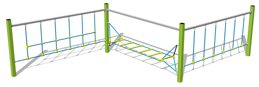 The ropes are made using HERKULES material (16 mm thick ropes made from polypropylene with a steel internal core) and are connected with plastic joints. All fastening material is galvanized or stainless steel.