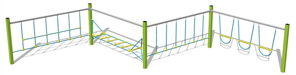 The ropes are made using HERKULES material (16 mm thick ropes made from polypropylene with a steel internal core) and are connected with plastic joints. All fastening material is galvanized or stainless steel.