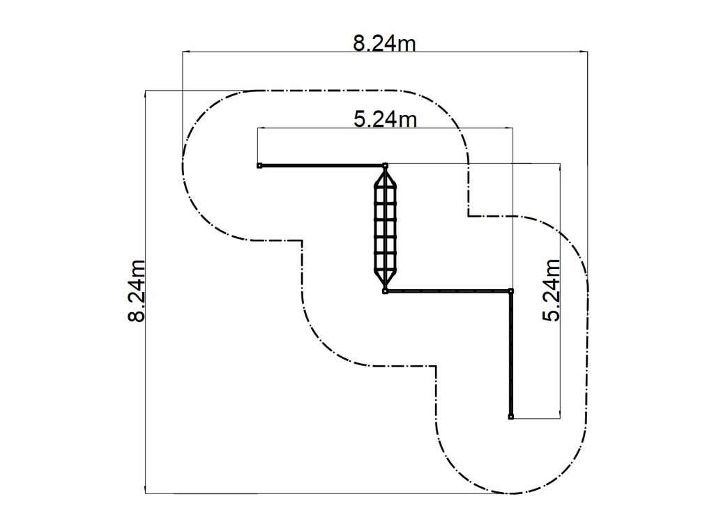 The ropes are made using HERKULES material (16 mm thick ropes made from polypropylene with a steel internal core) and are connected with plastic joints. All fastening material is galvanized or stainless steel.