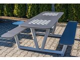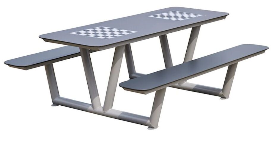 The load-bearing structure of the table is made of structural steel, which is protected against corrosion by a zinc coating, which results in a very significant extension of the play element's lifetime or duplex powder coated with coat curing according to RAL to prevent corrosion. The table are made from HPL (High-pressure laminate, which is characterised by high colour stability and water resistance). All fastening material is galvanized or stainless steel.