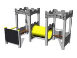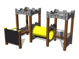 The support structure of the playhouse is made of structural steel which is protected against corrosion by zinc coating, resulting in a very prolonged service life of the workout elements or duplex powder coated with coat curing according to RAL to prevent corrosion. These structures are anchored to concrete footings. All other metallic elements are also zinc coated or duplex powder coated with coat curing according to RAL to prevent corrosion.