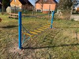 Rope net LP010K - there is no need for a fall zone up to the height of 1 m, a grass surface is enough. We offer three color variants of the support structure - red, blue and brown.