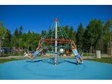 The support pillar of the rope merry-go-round is made from structural steel, it is zinc coated or duplex powder coated with coat curing according to RAL to prevent corrosion and fixed in a concrete bed. All other metal units are zinc coated or duplex powder coated with coat curing according to RAL to prevent corrosion.
