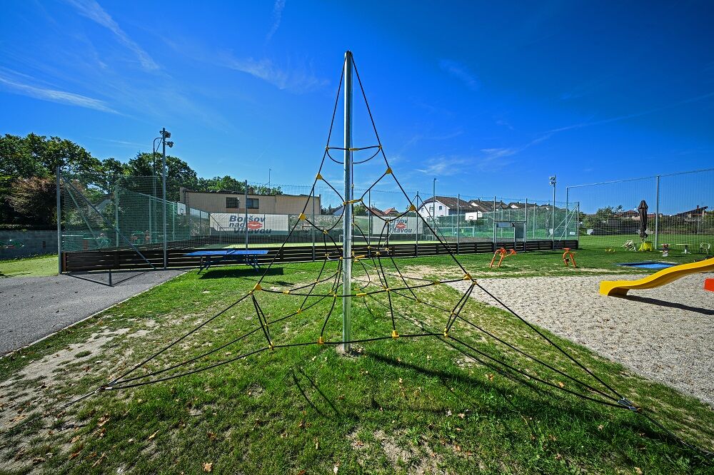 Rope pyramid (f.h. 1 m, with 3 tension locks) - there is no need for a fall zone up to the height of 1 m, a grass surface is enough. More information