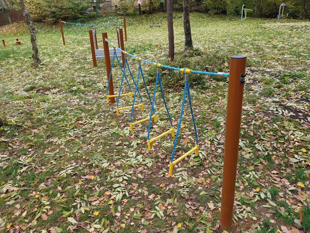 Rope net LP010K - there is no need for a fall zone up to the height of 1 m, a grass surface is enough. We offer three color variants of the support structure - red, blue and brown.