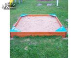 The sandpit is made from glued wooden supports. This solution ensures maximum protection against cracking, which is common for products made from solid wood. The wooden supports are impregnated and coated with a triple layer of lacquer, which meets the terms and conditions of the EN71/3 Standard (safe for children's toys).