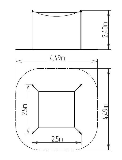The supporting structure of the sandbox shading is made of structural steel, which is protected against corrosion by hot-dip galvanizing, which results in a very significant extension of the life of the gaming element. This construction is embedded in a concrete bed. The sandbox shade iis made from rubber coated polyester mesh, which is UV resistant. The sandbox shading is water permeable. All fasteners are galvanized or stainless steel.