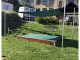 The supporting structure of the sandbox shading is made of structural steel, which is protected against corrosion by hot-dip galvanizing, which results in a very significant extension of the life of the gaming element. This construction is embedded in a concrete bed. The sandbox shade is made of so-called raschel (high-quality, strong and durable shielding fabric). The sandbox shading is water permeable. All fasteners are galvanized or stainless steel.
