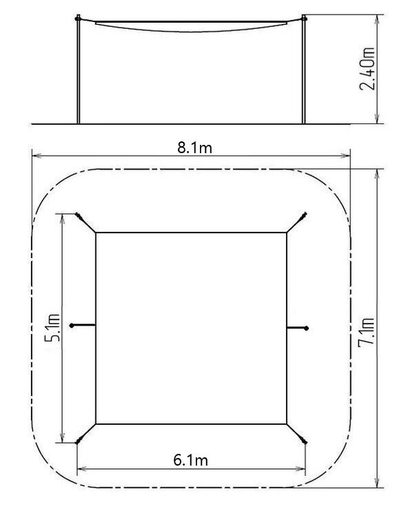 The supporting structure of the sandbox shading is made of structural steel, which is protected against corrosion by hot-dip galvanizing, which results in a very significant extension of the life of the gaming element. This construction is embedded in a concrete bed. The sandbox shade iis made from rubber coated polyester mesh, which is UV resistant. The sandbox shading is water permeable. All fasteners are galvanized or stainless steel.